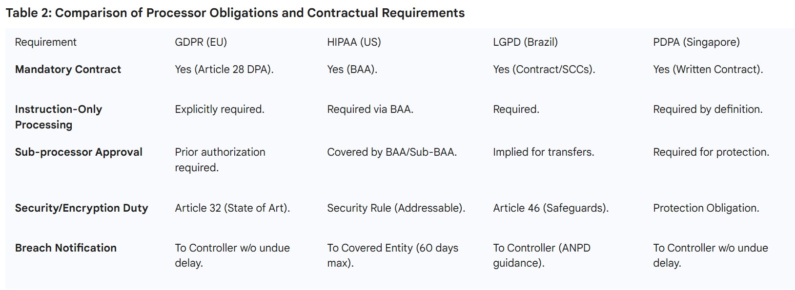 Table 2: Comparison of Processor Obligations and Contractual Requirements